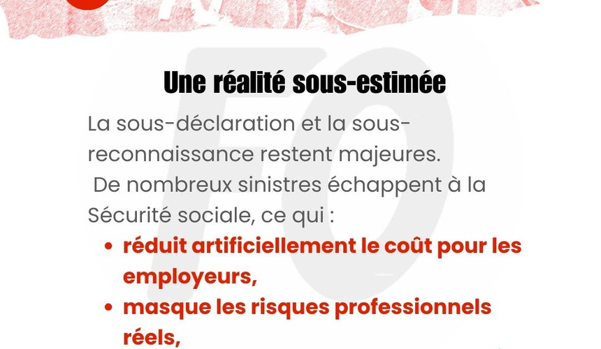 Ces chiffres, déjà dramatiques, ne donnent pourtant qu’une image très partielle de la réalité. La sous-déclaration des accidents du travail et la sous-reconnaissance des maladies professionnelles restent majeures, et de nombreux sinistres échappent encore à la Sécurité sociale. Ces pratiques permettent de réduire artificiellement le coût pour les employeurs et de masquer l’ampleur réelle des risques professionnels. Cette invisibilisation statistique affaiblit la prévention et prive les travailleurs de leurs droits.